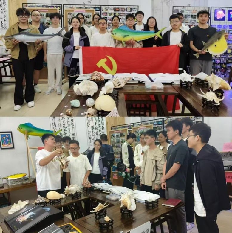集中学习结束后,三个支部组织全体党员和入党积极分子前往12栋一楼共享空间参观鱼类科普展。通过讲解员的讲述与展品的现场观摩,大家系统了解了鱼类多样性、海洋生态保护、渔业发展相关知识。与会同志一致认为,这既是一堂内容鲜活的党课,也是一场“党建+专业+科研深度融合”的实践探索。